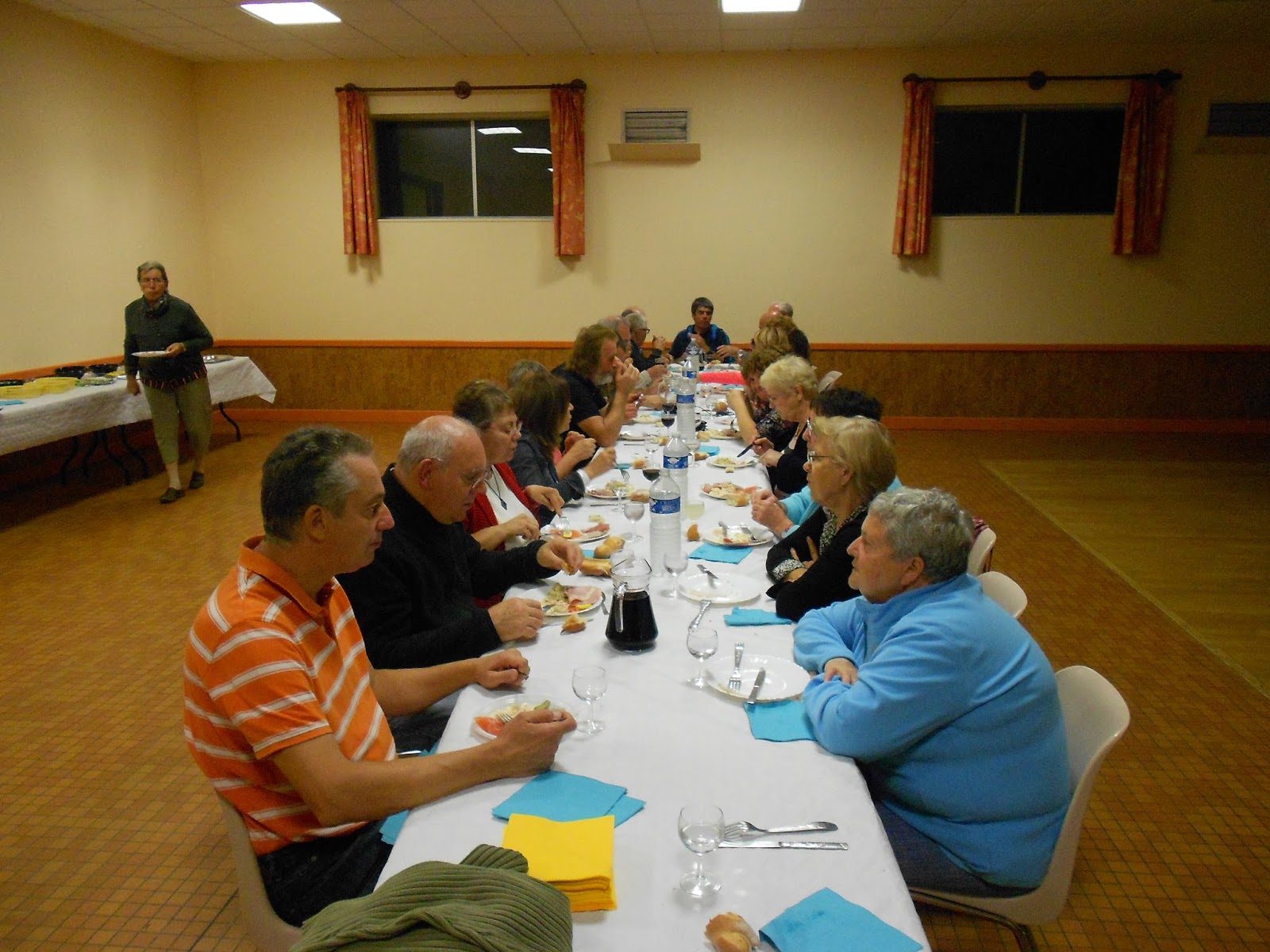 De retour à la salle, pendant que certains discutent en attendant les derniers marcheurs... |